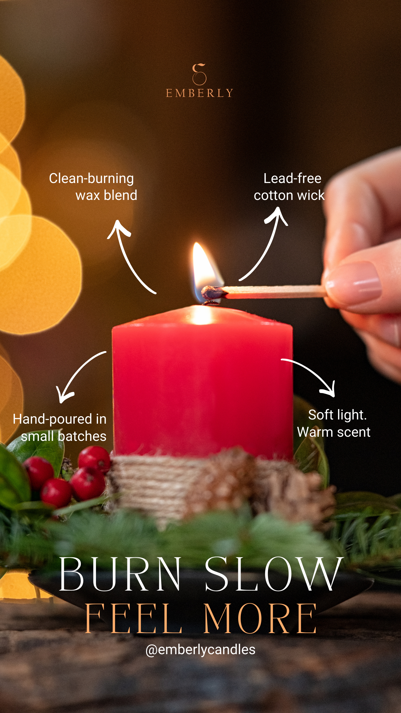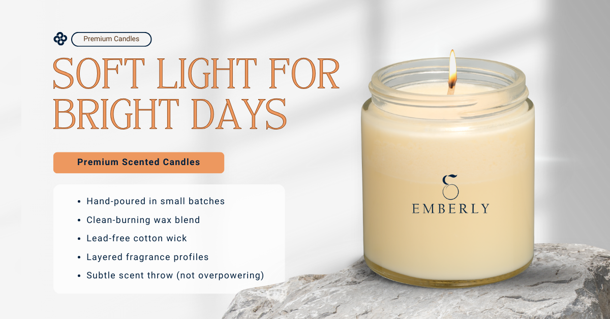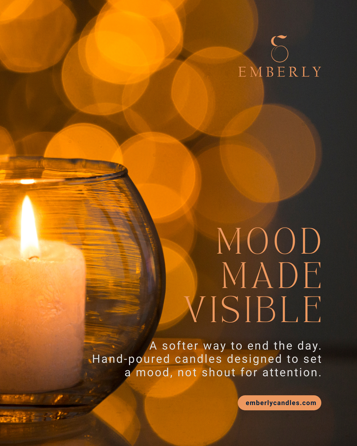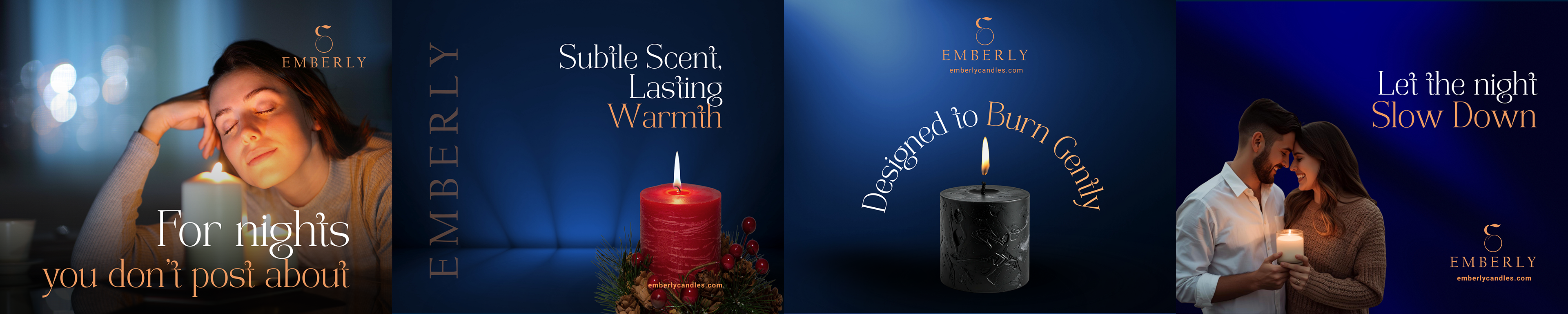EMBERLY is a home fragrance brand designed for quiet moments and slower evenings. The identity prioritizes mood, restraint, and subtle storytelling, creating an experience that feels warm, intimate, and intentionally understated.