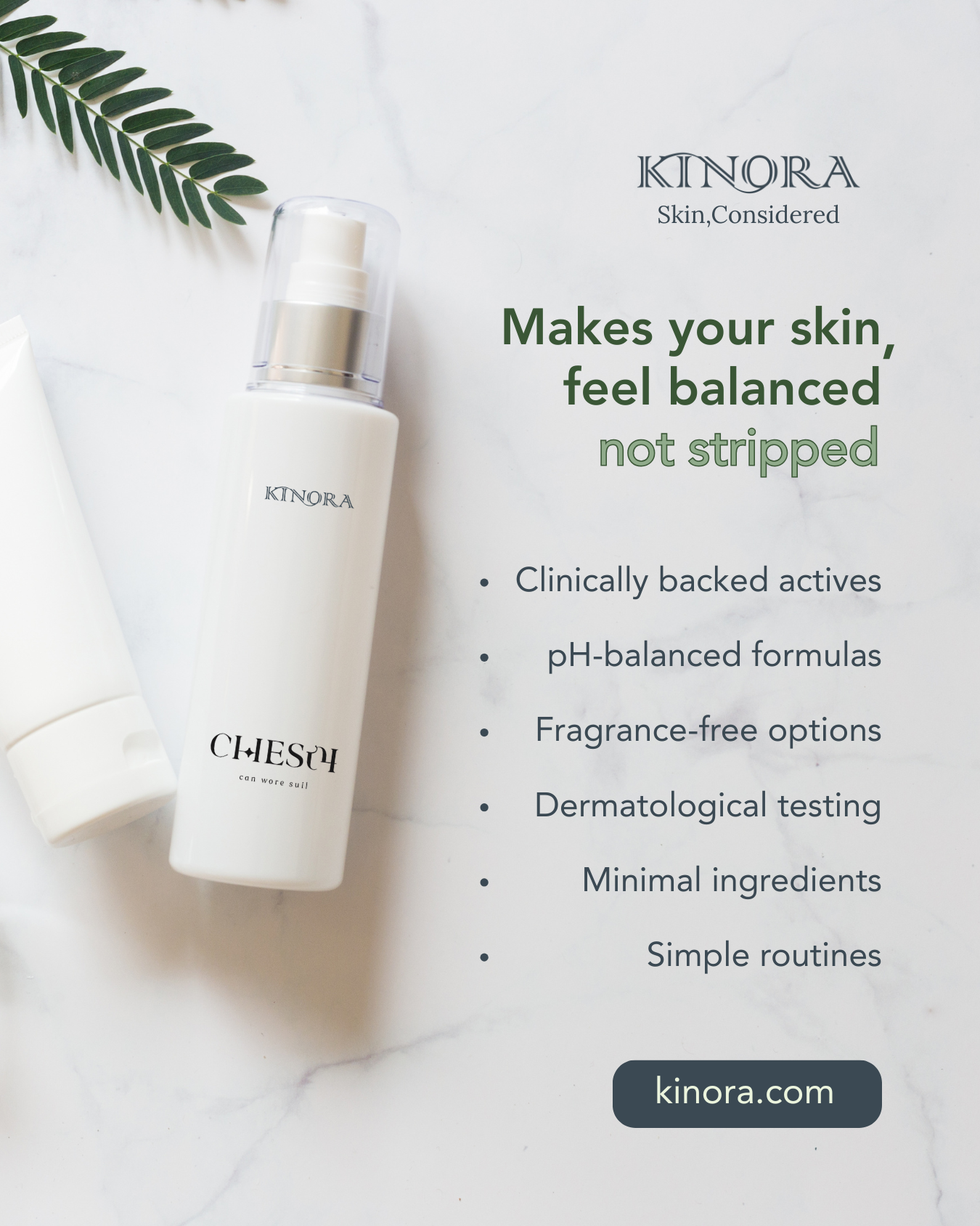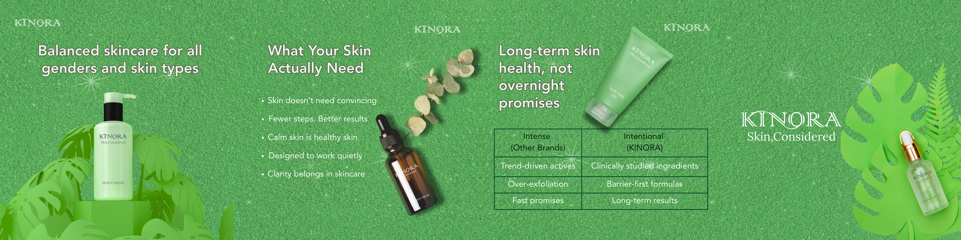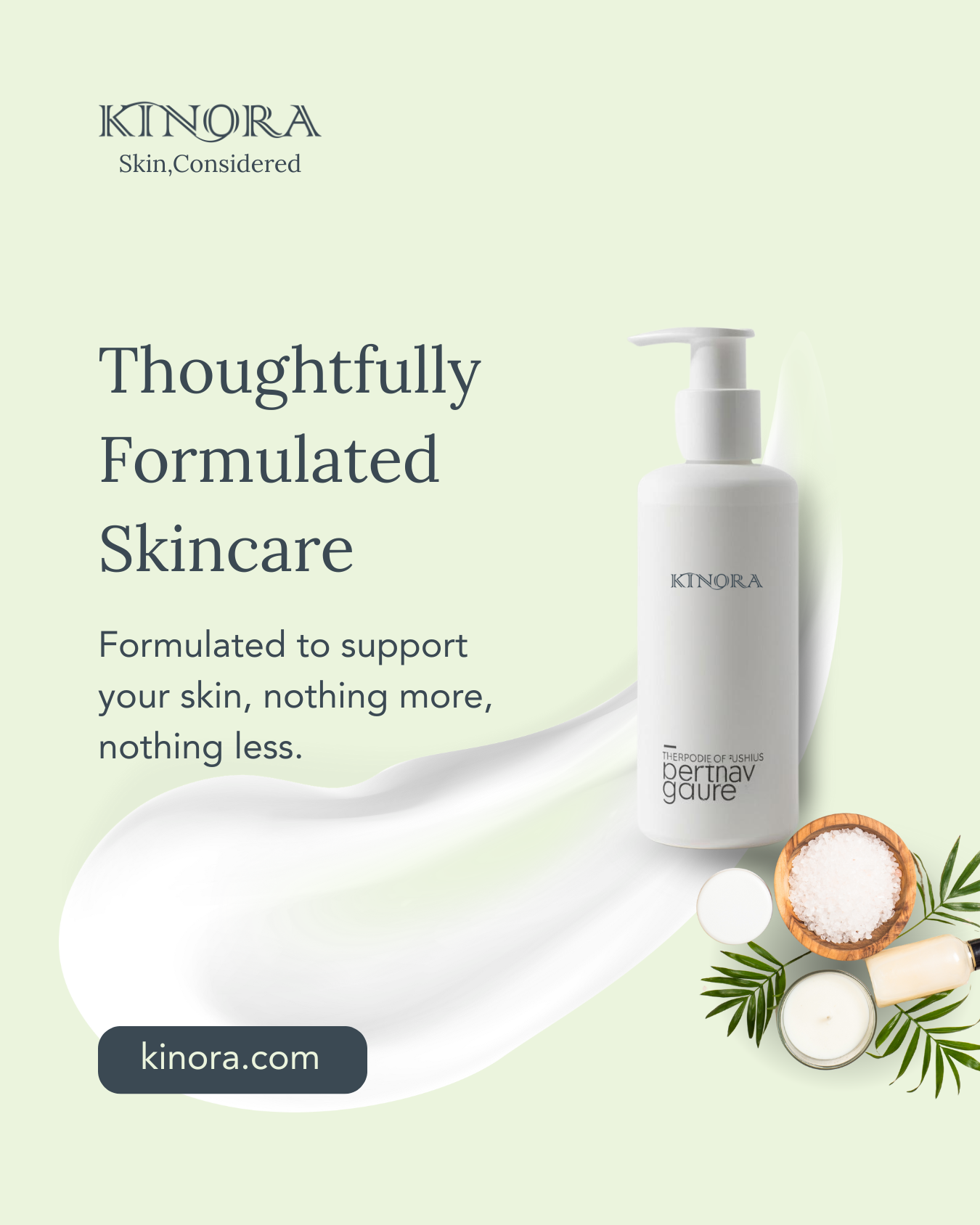 KINORA is a gender-neutral skincare brand focused on clarity, function, and long-term skin health. Built to cut through an overcomplicated beauty market, the brand emphasizes clinically considered formulations, minimal ingredients, and a calm, intelligent visual identity.